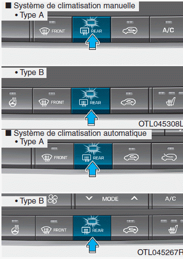 Si votre véhicule est équipé d'un dégivreur de rétroviseur extérieur, celui-ci est activé en même temps que le dégivreur de la lunette arrière.
