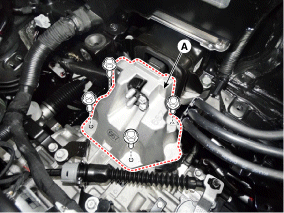 Déposez le support de fixation (A) de la boîte de vitesses.