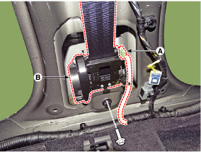 et retiré l'enrouleur de la ceinture de sécurité avant (B).